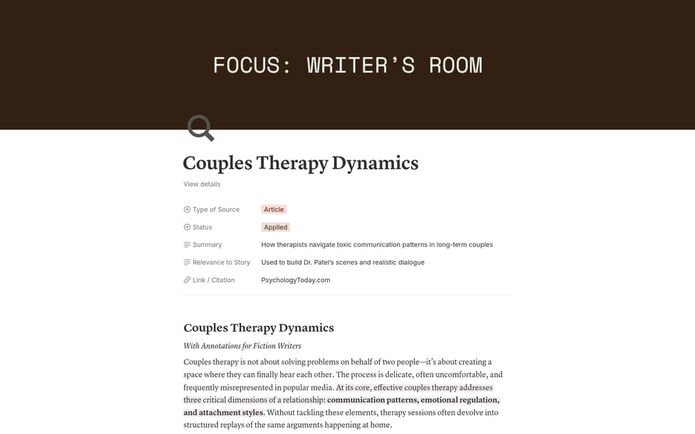The goal behind the Focus: Writer's Room is to build a dashboard where you can fully immerse in your story - from the writers to the settings to the research and the chapters themselves.